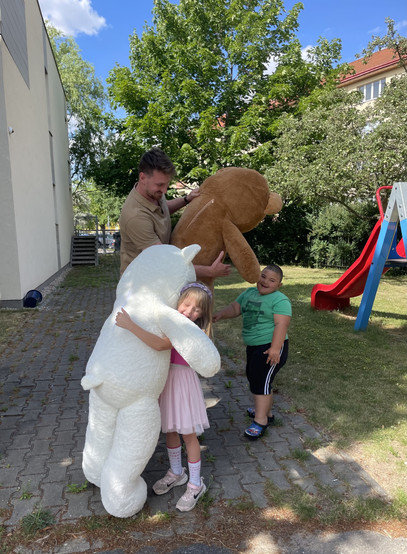 Za milé překvapení bychom tímto rádi poděkovali panu Michalovi Weissovi ze společnosti Můj plyšák, který Azylovému domu pro rodiny s dětmi daroval tři velké plyšové medvědy. Noví plyšoví přátelé se téměř okamžitě stali nejen dobrými parťáky na hru, ale vzhledem k jejich rozměrům a měkkým kožíškům jsou to noví parťáci i na mazlení.